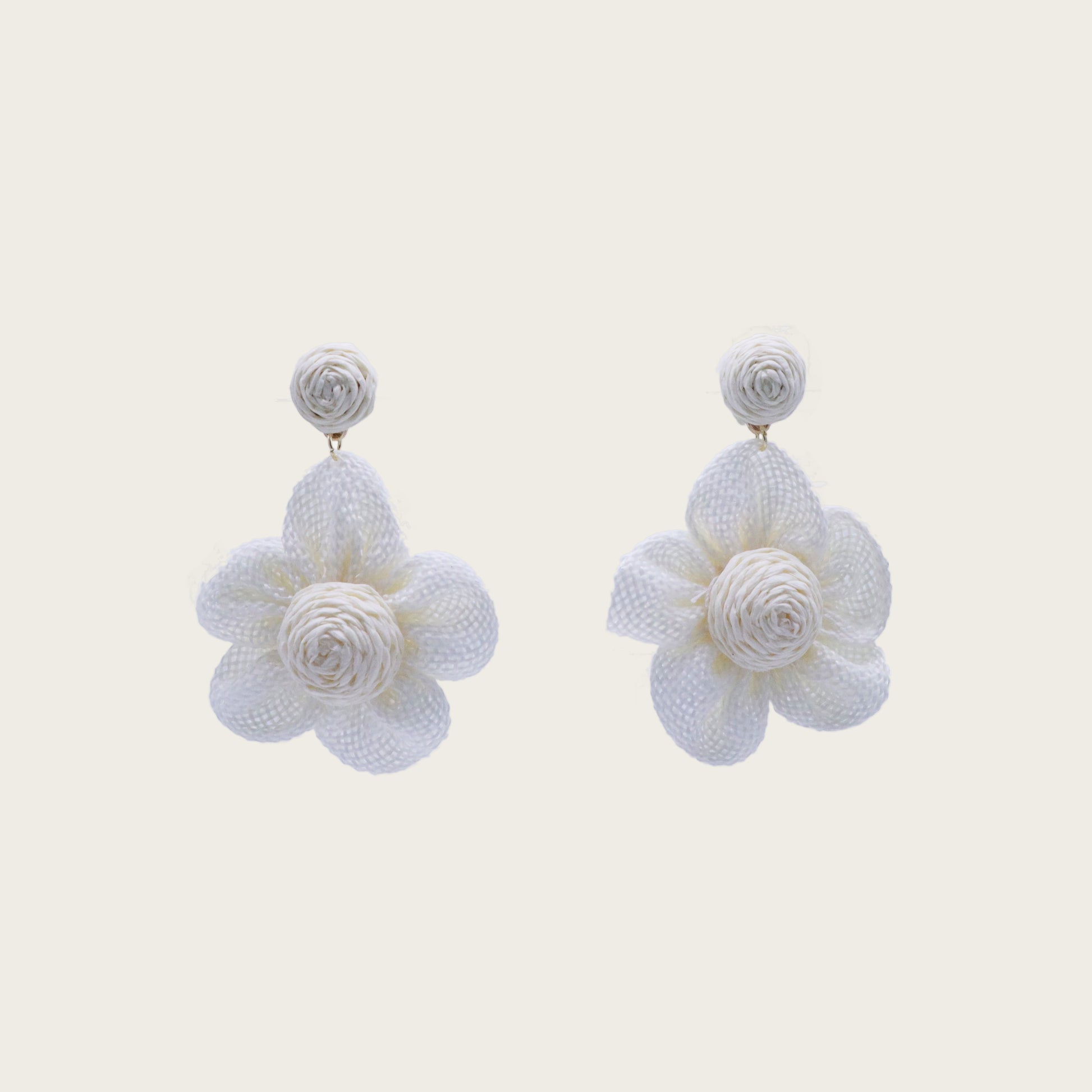 Let your ears bloom with these artisan-crafted raffia floral earrings, featuring a cascading garden of hand-dyed blossoms and rattan vines. Each drop is a wearable bohemian bouquet – with embroidered raffia petals,