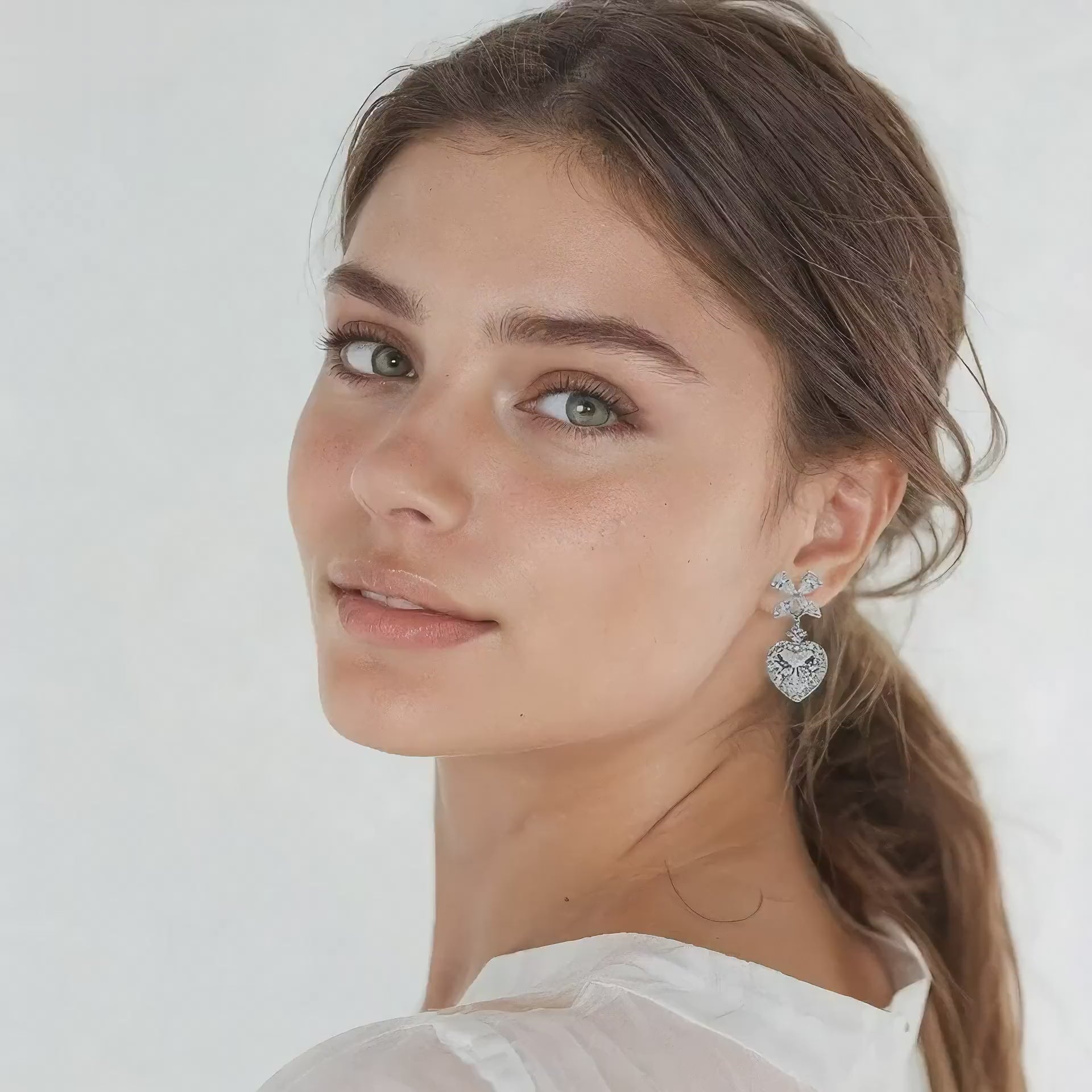 Dazzle with every move in these 18K white gold plated drop earrings, featuring a stunning crystal heart charm that catches the light beautifully. The delicate heart-shaped crystals add a touch of romance and sophistication, making them perfect for both special occasions and everyday elegance.